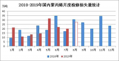 據統計,2019年7月份國內聚丙烯檢修損失量在20.12萬噸,環比(2019年6月份22.01萬噸)減少1.89萬噸,降幅在8.58%;...