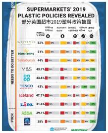 ????????在2019年減廢表現(xiàn)排行榜中,Waitrose和Morrisons在減少整體塑料足跡方面表現(xiàn)最佳,他們致力于推廣無包裝和可重復(fù)使用解決方。