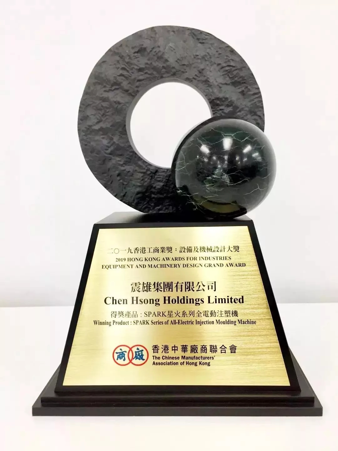 ????????2019年12月2日,震雄集團旗下SPARK星火系列全電機以及超霸6500噸伺服驅動二板雙射臺超大型注塑機在香港中華廠商聯合會主辦的“2019香港工商業獎”:設備及機械設計比賽中分別榮獲該組別的榮譽“大獎”及“優異證書”,表彰震雄集團于設備及機械設計的卓越能力及成就,更突顯震雄在行業間的技術水平及地位。