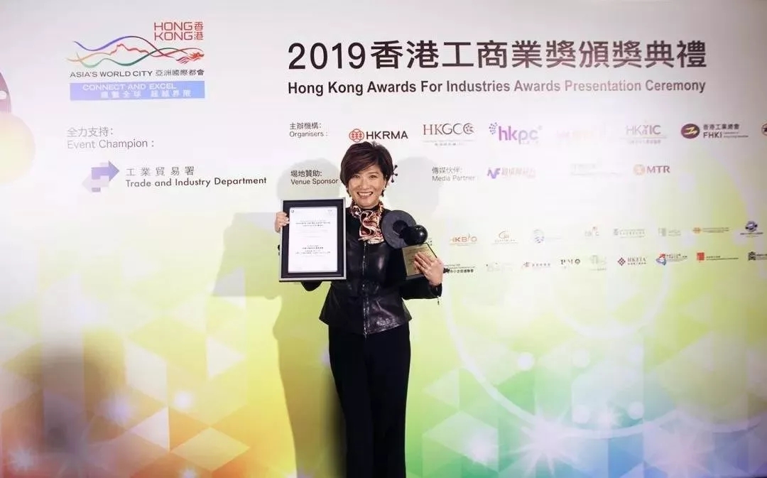 蔣麗婉女士上臺接受主辦嘉賓頒授2019香港工商業大獎
