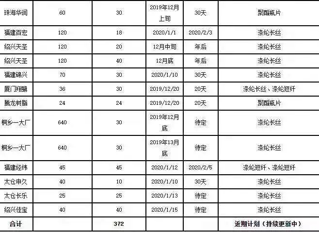 2019年底,聚酯裝置減產(chǎn)檢修or開(kāi)車投產(chǎn)?