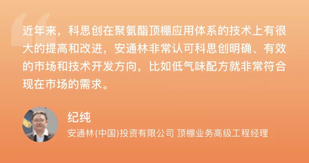 ????????在合作過程中,安通林以主動開放的合作方式,為科思創(chuàng)提供有效的試制環(huán)境,并在研發(fā)過程中針對產(chǎn)品特性及時提出改進(jìn)建議,最終取得了可喜的成果。科思創(chuàng)研發(fā)的聚氨酯頂棚解決方案采用了新型ISO生產(chǎn)工藝和新一代聚醚體系,可減少預(yù)攪拌流程。該材料穩(wěn)定性高,避免了頂棚不同區(qū)域吸音性能波動大的問題。同時,針對不同車型的技術(shù)要求變化,科思創(chuàng)可提供較寬的技術(shù)指標(biāo)范圍,能夠以一組體系滿足傳統(tǒng)兩組體系才能達(dá)到的效果。此外,使用該解決方案,VOC排放較行業(yè)主流水平可降低至多30-40%,有效提升了一個級別。