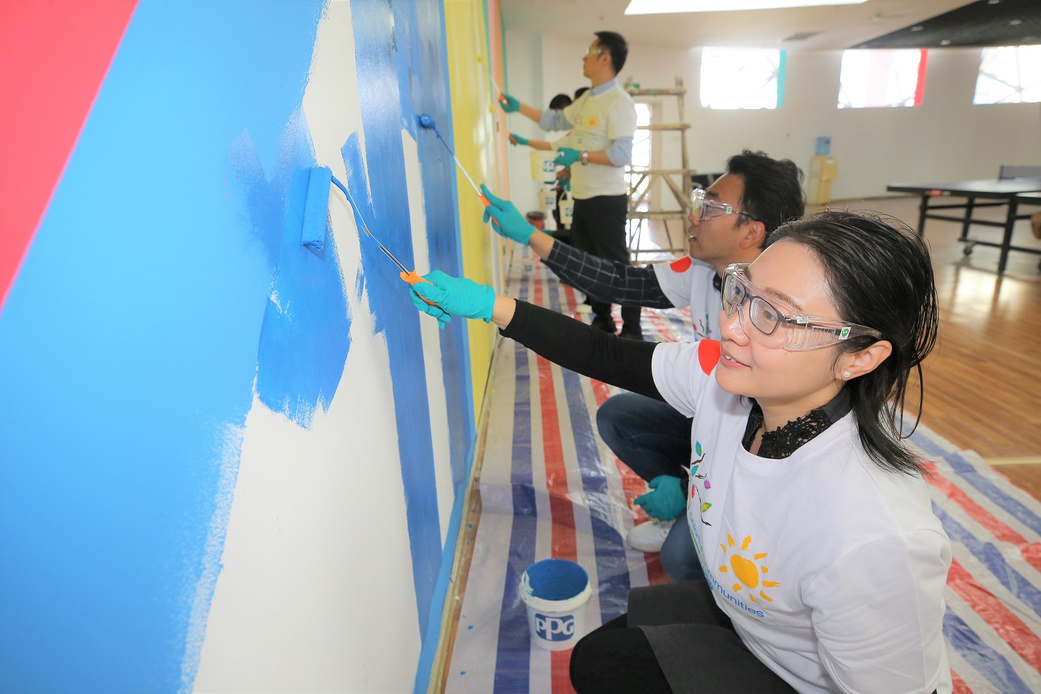 ????????中國天津,2019年10月29日–近日,PPG(紐約證券交易所代碼:PPG)“多彩社區”活動在天津空港經濟區社區文體活動中心成功舉辦。此次“多彩社區”活動與天津開發區慈善協會聯合舉辦,共有近60名PPG員工、家屬及社區代表志愿者參與,貢獻了超過150個小時的志愿服務時間,幫助社區居民美化了文體活動中心休閑娛樂的環境,從而使周邊5萬多的社區居民受惠。