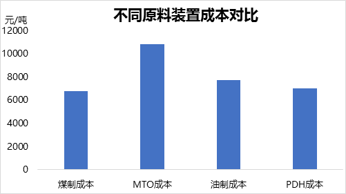 ????????我們在從不同裝置生產聚丙烯成本對比來看: