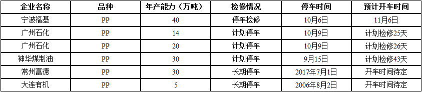 ????????國內PP裝置檢修情況匯總