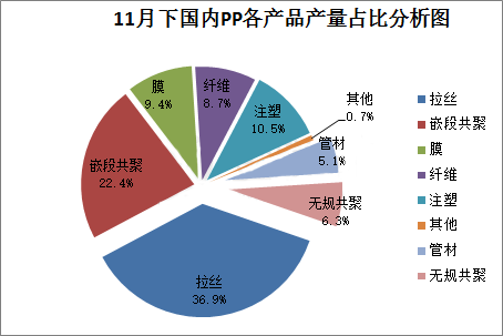 據(jù)產(chǎn)量核算模型統(tǒng)計(jì),2019年11月份國(guó)內(nèi)PP粒總產(chǎn)量是187.90萬(wàn)噸,同比去年(151.13萬(wàn)噸)增加36.77萬(wàn)噸。上游原料反彈走高,下游恐漲適當(dāng)補(bǔ)倉(cāng),原料采購(gòu)維持短期庫(kù)存。石化庫(kù)存在期貨上行和月底剛需釋放后,交投轉(zhuǎn)好去庫(kù)速率加快。對(duì)比產(chǎn)量數(shù)據(jù)來(lái)看,拉絲較上期減少5.30%,嵌段共聚增加6.14%,占比增加0.3%,延能化首次產(chǎn)出透明料,無(wú)規(guī)共聚產(chǎn)量增加,占比較上期增加1.1%。均聚注塑產(chǎn)量減少4.96%,占比回落0.9%。 臨近年底國(guó)內(nèi)檢修減少,檢修損失量較上期減少3.8萬(wàn)噸,目前短停裝置均有快速恢復(fù)預(yù)期,浙石化、恒力二期開(kāi)車(chē)推遲至12月中下旬,供應(yīng)壓力在1月份逐漸明顯。