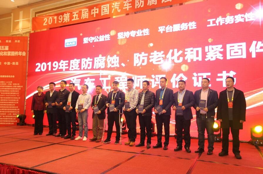 PPG大中華區(qū)一般工業(yè)漆高級商務(wù)總監(jiān)王華(右四)與PPG中國區(qū)電泳涂料技術(shù)服務(wù)經(jīng)理歐陽澤華(右三)在第五屆中國汽車防腐蝕老化和緊固件年會中榮獲高級工程師專業(yè)證書