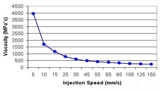 ????????做黏度曲線是為了選擇一個合適的注射速度,當各參數存在微小波動時不會引起熔體黏度的大變化。每模之間的波動應該盡量小,以保證產品質量的可重復性。