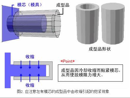 3、在成型條件上,模具溫度偏低且保壓偏大時容易引起脫模不良。