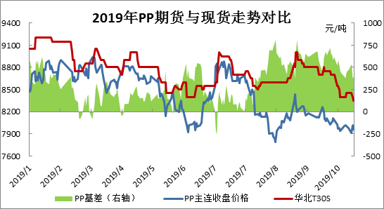 ????????期貨是未來的現貨,現貨是期貨的折現,兩者本是同一產品只是不同交割期。現貨是期貨的定價之錨,現貨價格的走向更是要瞄準期貨價格的移動方向。如圖所示,PP期貨和現貨大部分時間走勢一致。通多對兩者長期指數數據分析,相關系數能達到0.95以上。特別是近幾年,傳統貿易日漸沒落,代之而起的是點價貿易,基差貿易和含權貿易等新型貿易方式?;钭鳛楝F貨和期貨之差,是預期的供應和需求變化之差值的體現,產業客戶和大機構客戶商談固定的基差為升貼水,通過現貨=期貨+升貼水來制定價格。