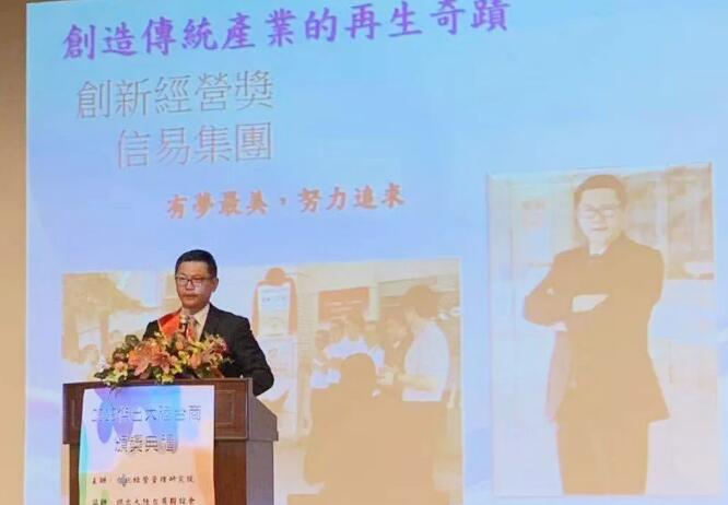 ????????此次評(píng)選活動(dòng)主辦方為臺(tái)北經(jīng)營(yíng)管理研究院,該機(jī)構(gòu)旨在當(dāng)下競(jìng)爭(zhēng)劇烈的微利時(shí)代,促進(jìn)臺(tái)灣企業(yè)轉(zhuǎn)型升級(jí)。大陸臺(tái)商獎(jiǎng)到今年已走入第七屆,包含外銷(xiāo)杰出、內(nèi)銷(xiāo)典范、連鎖標(biāo)竿、綠色節(jié)能、轉(zhuǎn)型升級(jí)、接班傳承、創(chuàng)新經(jīng)營(yíng)、協(xié)會(huì)貢獻(xiàn)、兩岸貢獻(xiàn)、回饋鄉(xiāng)里,今年還增加青年創(chuàng)業(yè),共11大類(lèi)獎(jiǎng)項(xiàng),信易非常榮幸獲得創(chuàng)新經(jīng)營(yíng)獎(jiǎng)。