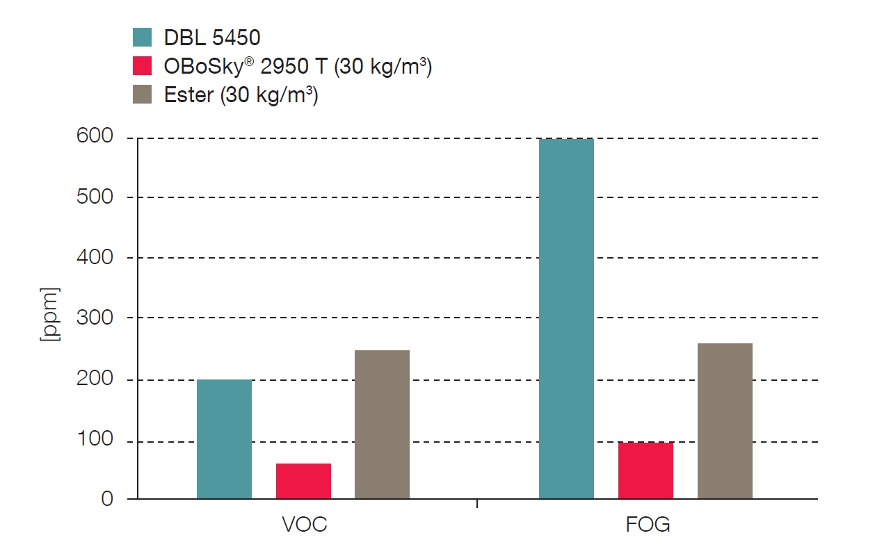 ????????據(jù)稱(chēng),頂篷級(jí)泡沫具有非常均勻的結(jié)構(gòu)和細(xì)孔,提供易于在火焰和粘合過(guò)程中層壓的表面,同時(shí)粘附在表面輕質(zhì)的裝飾紡織品上。據(jù)說(shuō)該材料的醚基預(yù)聚物技術(shù)確保了非常好的耐水解性和長(zhǎng)期的高機(jī)械性能。并且,與僅基于酯的泡沫相比,這種泡沫的VOC和FOG的水平顯著降低。根據(jù)VDA 278和VDA 270標(biāo)準(zhǔn)的VOC和FOG測(cè)試,OBoSky的測(cè)量結(jié)果明顯低于DBL 5450規(guī)定的限值,DBL 5450是戴姆勒基于聚氨酯的柔性泡沫的供應(yīng)規(guī)定。