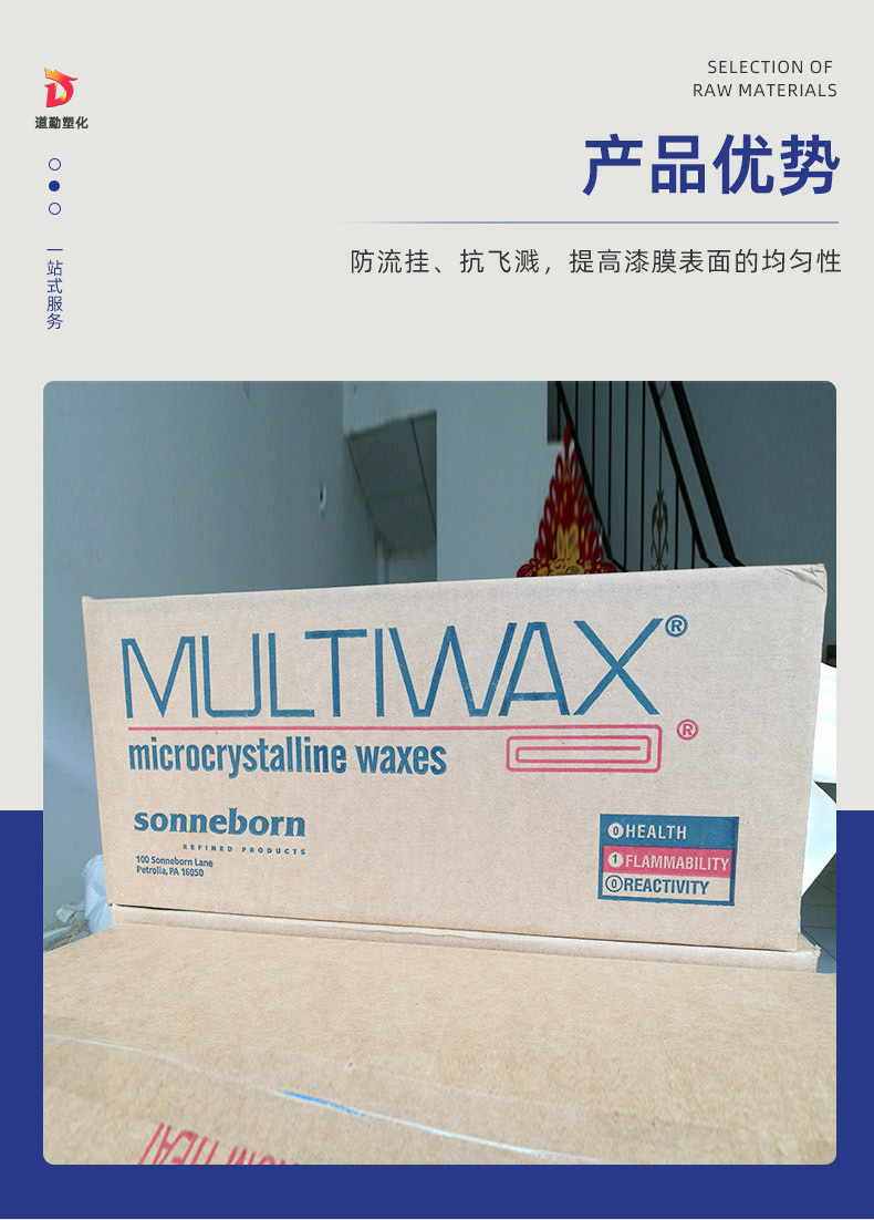 產品用途:產品適用于軍品、電子、冶金、化工、日化、醫藥及食品等行業,用于防潮、粘結、上光、絕緣、鈍感、鑄模、橡膠、醫藥、化妝品、食品組份及食品包裝等。